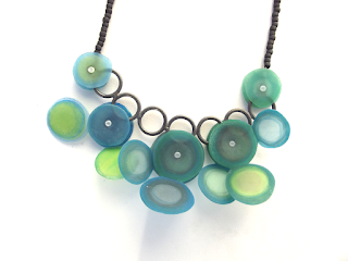 I started playing with different materials…polymer clay…leather…wood…mother of pearl…acrylic…I eventually discovered polypropylene! Yes, it is still plastic, but I love the vibrant colours offered by synthetic materials and unlike resin, this plastic is recyclable! Commonly used for stationery, food packaging and even bank notes. My new process creates absolutely no waste as every tiny scrap can be incorporated into a new piece.